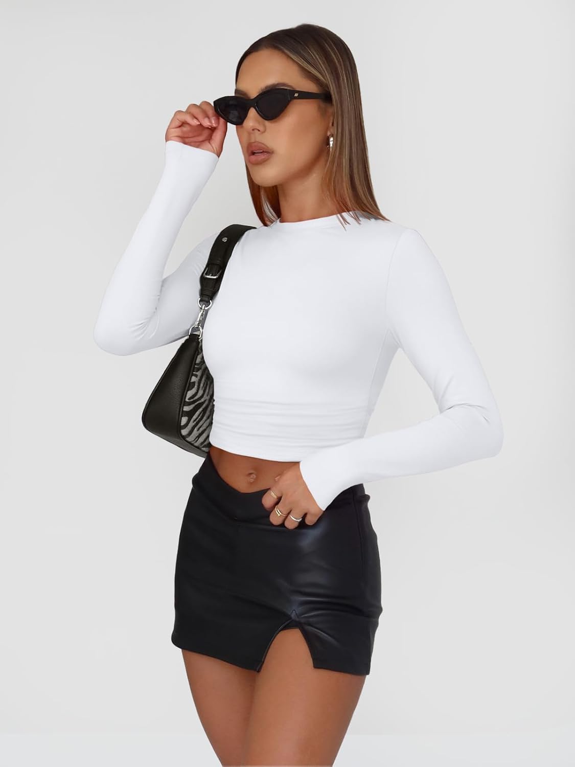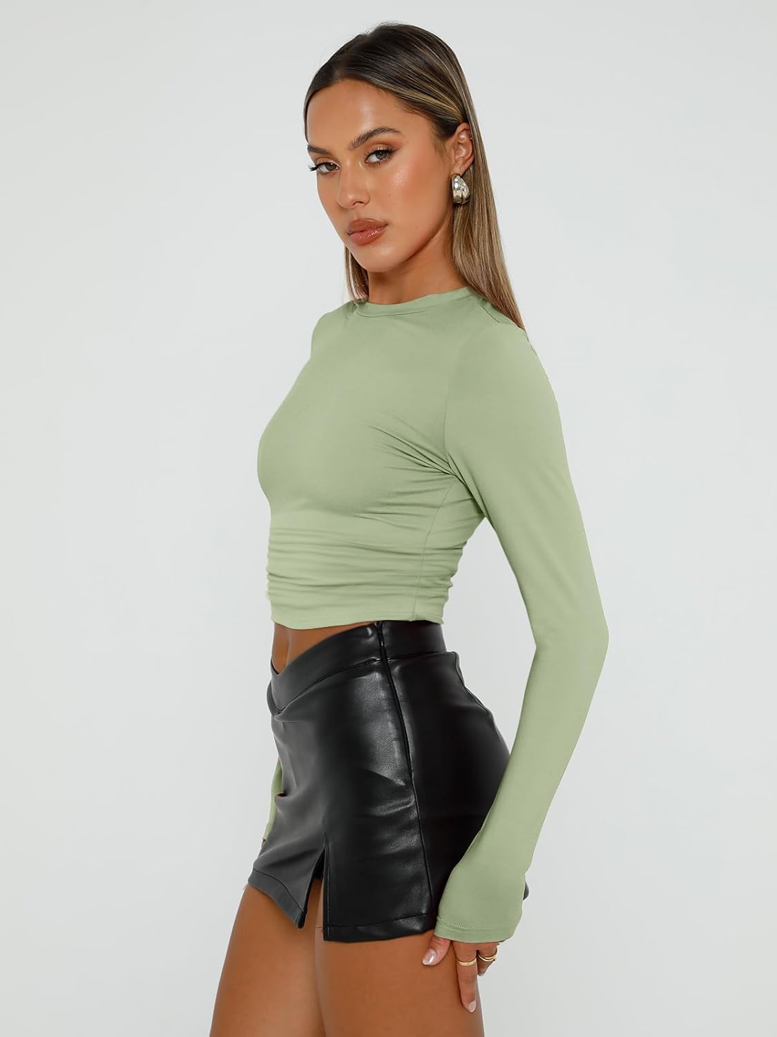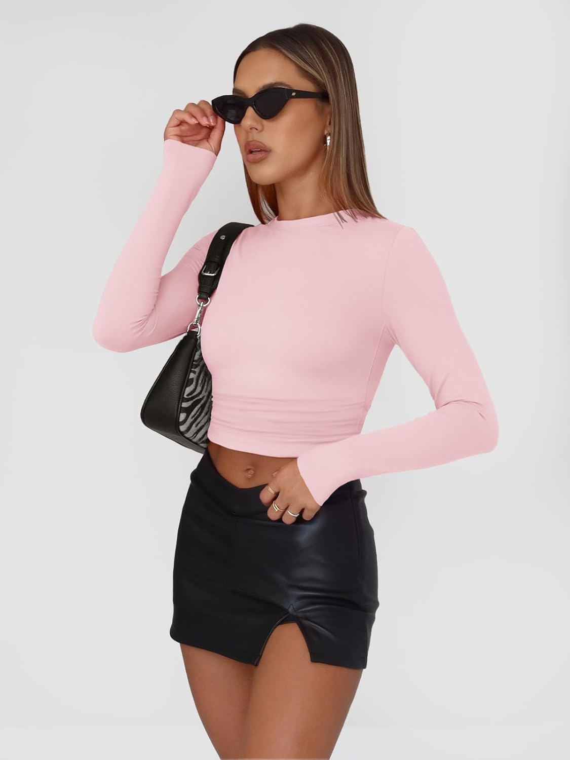 Womens Long Sleeve Shirt Basic Crop Tops Fall Fashion Underscrubs Layer Slim Fit Winter Clothes